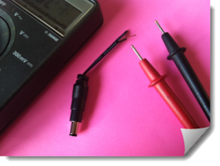 If you do the same, you will need to figure out the polarity of the two wires. Usually there will be something that distinguishes the connectors. You might be lucky enough to find red and black wires running inside the same outside insulation. The one I chose has two black wires molded together. One side is marked by a broken white line. I stripped some insulation off one of the wires that was still attached to the plug. Then I used my multimeter to see if it was connected to the inside connector, or the outside barrel.
