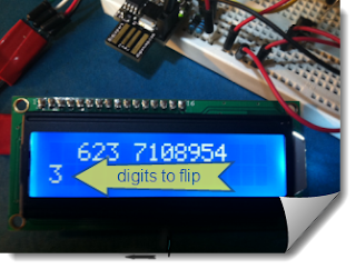 lcd.setCursor(0,1); lcd.print(char(tick+48)); lcd.setCursor(2,0); lcd.print(' '); flip(); delay(1000);